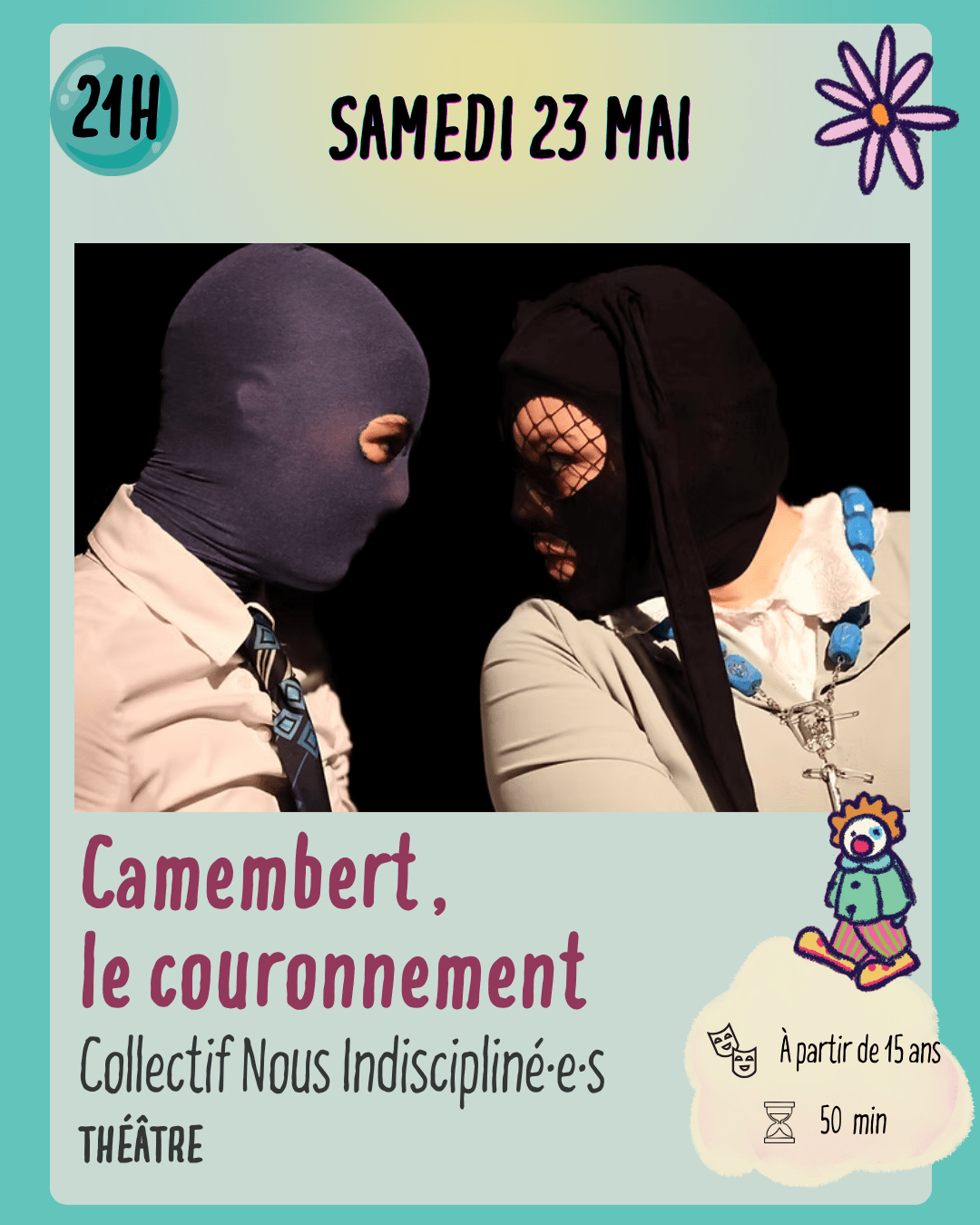 C’est donc sous la forme d’un zapping TV, Camembert : le couronnement dresse la satire d’un système capitaliste, bourgeois, patriarcal et né d’une culture chrétienne. Le ton est direct, parfois provocateur, souvent parodique. C’est une esthétique burlesque, drag et militante qui habille la pièce : paillettes, cagoules, talons et pancartes en carton.