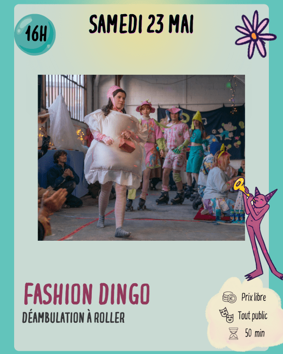 Fashion Dingo est un collectif de six artistes dont la pratique hybride explore les formes alternatives de la mode, à travers une approche participative, critique et joyeusement irrévérencieuse. En mêlant costume, performance, musique, scénographie et vidéo, nous construisons des événements festifs et immersifs où le public est activement invité à participer.